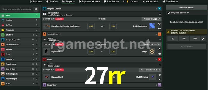 A aposta 27rr oferece aos jogadores a experiência mais conveniente de apostas em eSports!